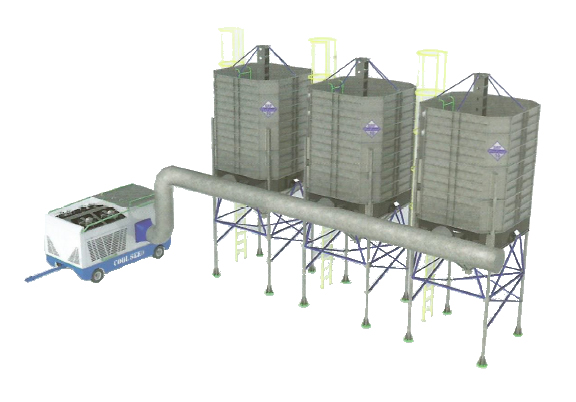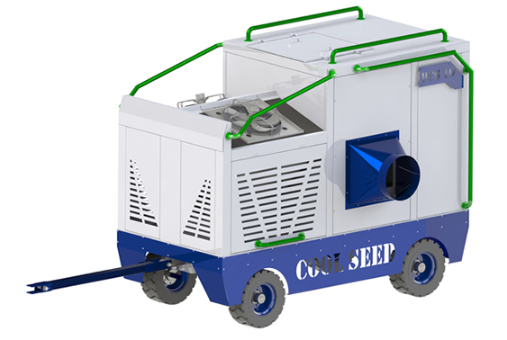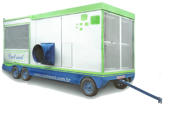 Máquinas para resfriamento de Grãos e Sementes PCS São equipamentos destinados ao resfriamento artificial de grandes volumes de grãos em silos verticais ou armazéns graneleiros, com capacidade nominal de 6.000t a 12.000t, podendo resfriar grandes graneleiros em várias frações destas potências, também, em grandes sementeiras com a inserção do resfriamento no ensaque.